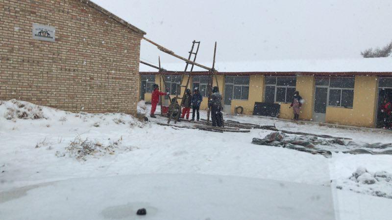 (班組到達(dá)雪中搭設(shè)食堂)
